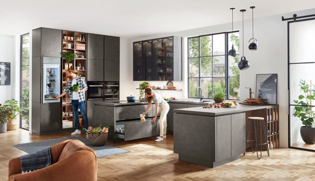 When you have children, shiny surfaces don’t stay pristine for long. That’s why we often recommend anti-fingerprint doors – especially in darker or matt finishes. Both Rotpunkt and Nobilia offer high-quality anti-fingerprint surfaces across selected kitchen ranges. These finishes help maintain a clean, refined look even after snack time or craft projects. You won’t be constantly wiping down marks or chasing after smudges, and the kitchen stays looking fresh without the effort.