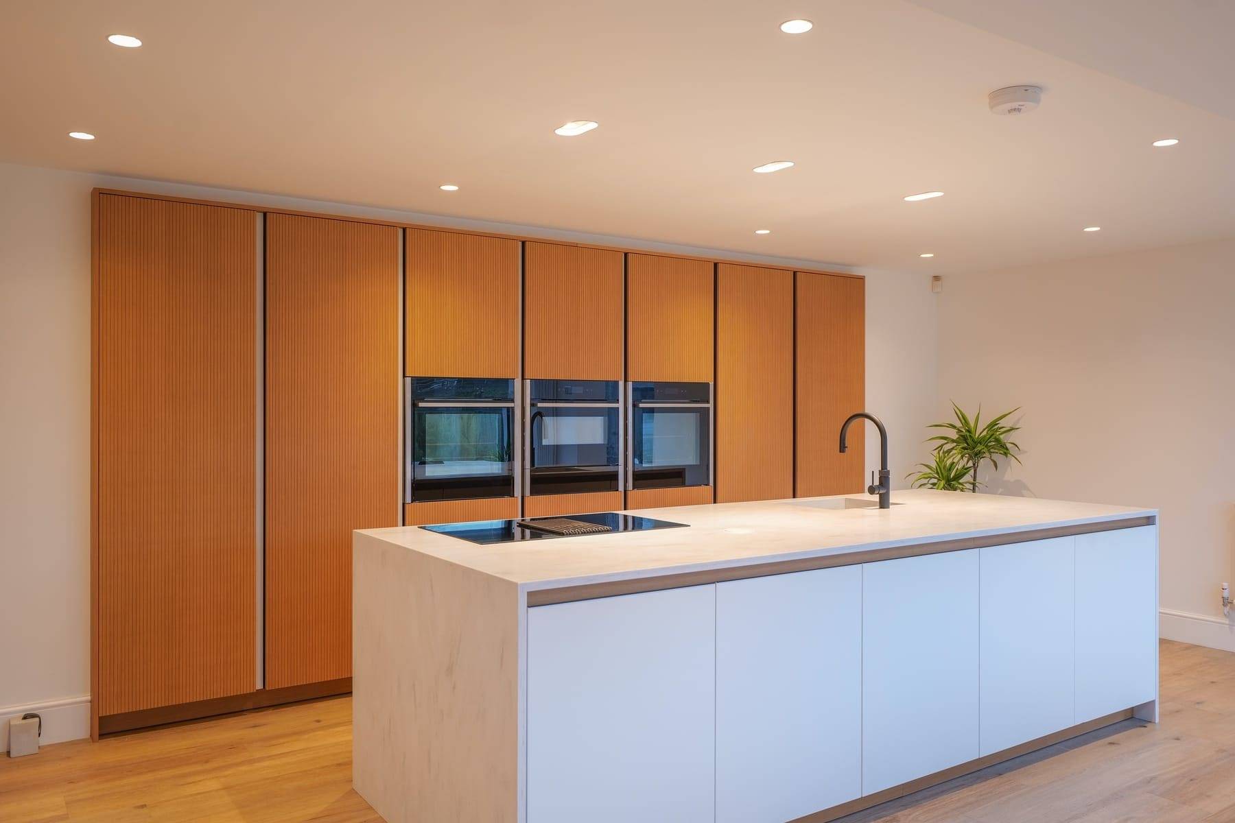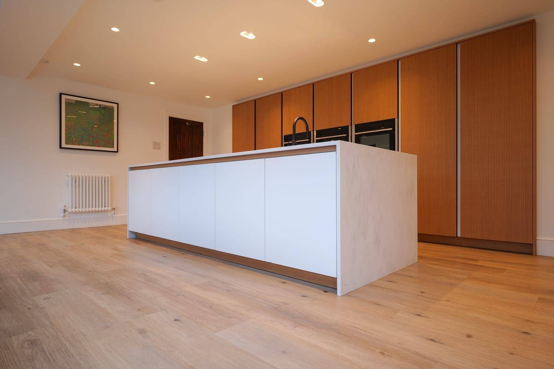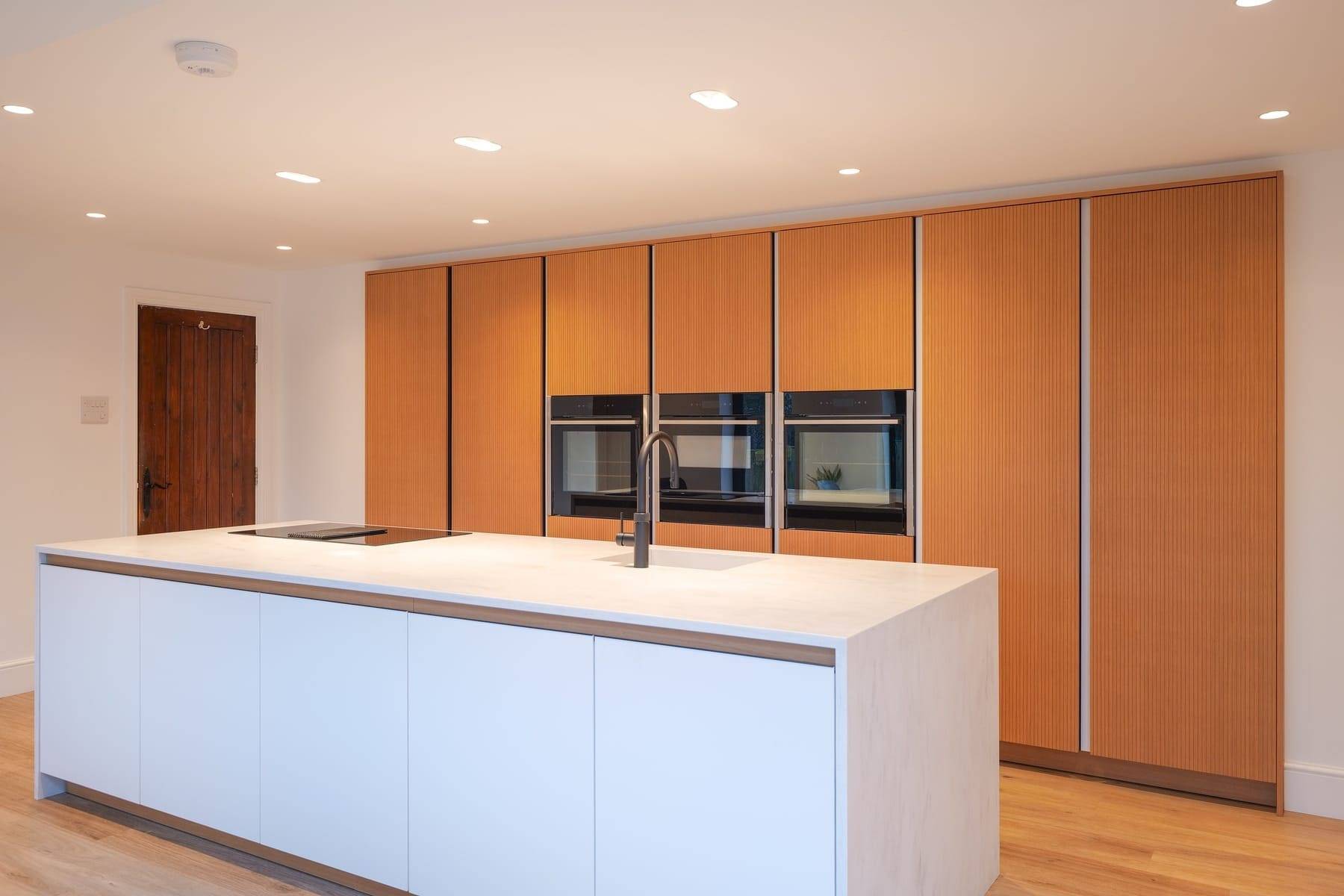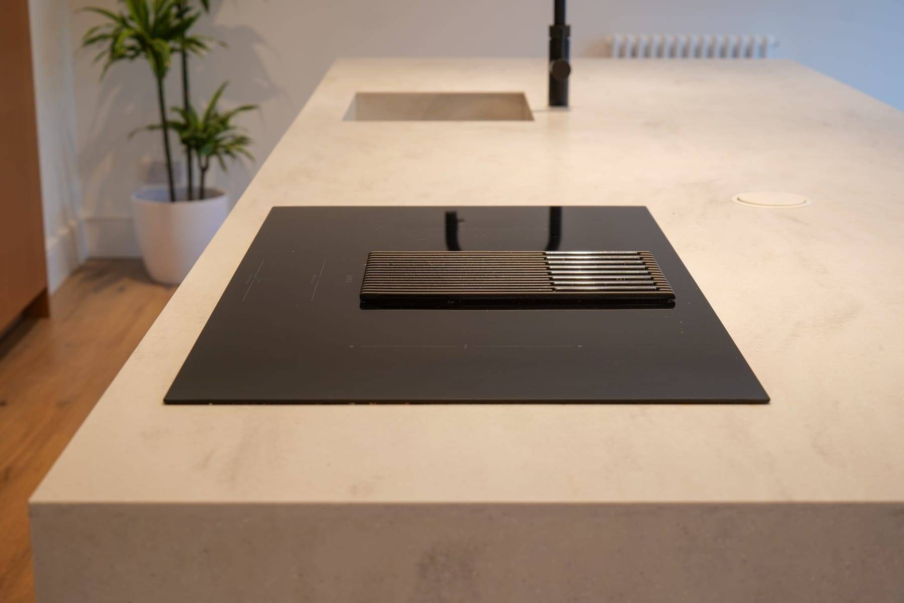 - Corian Rain Cloud Worktops with mitred waterfall island feature
