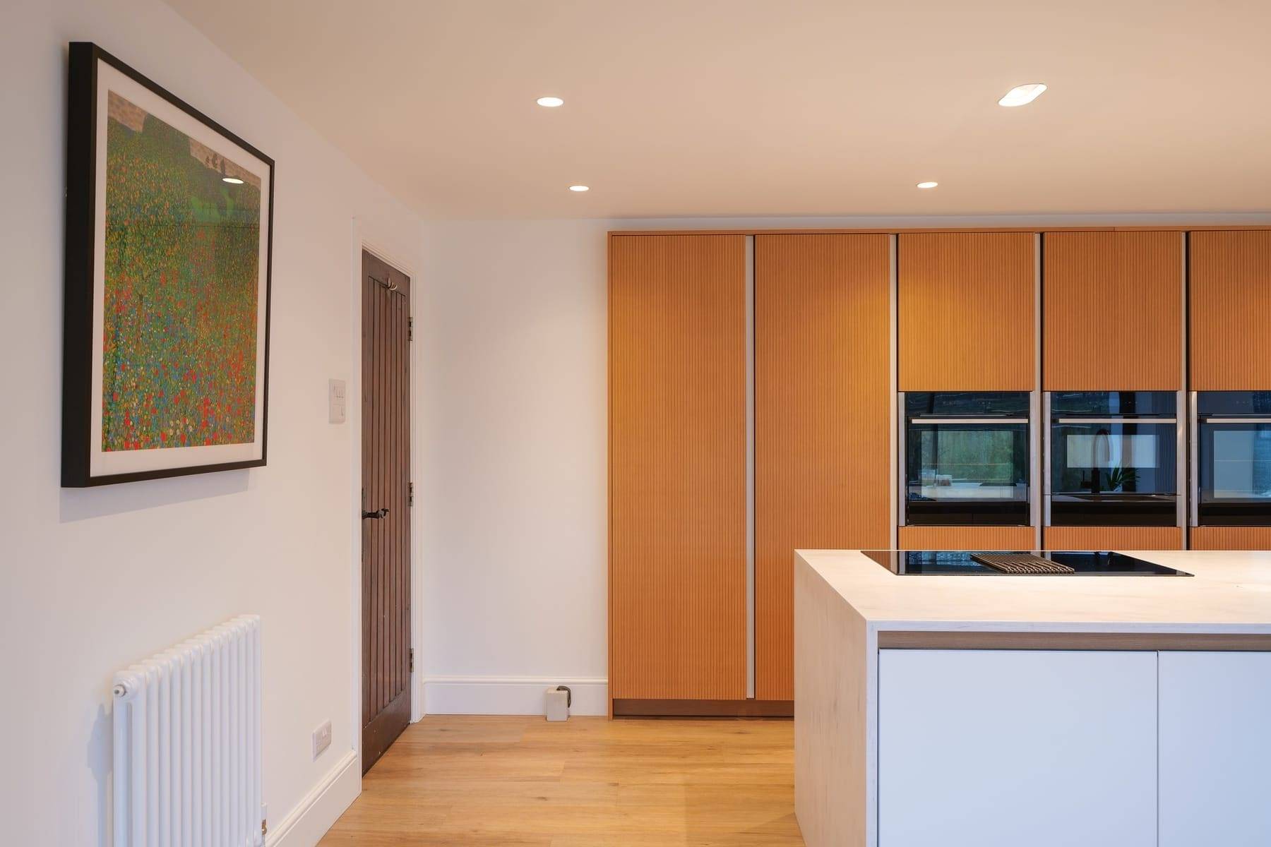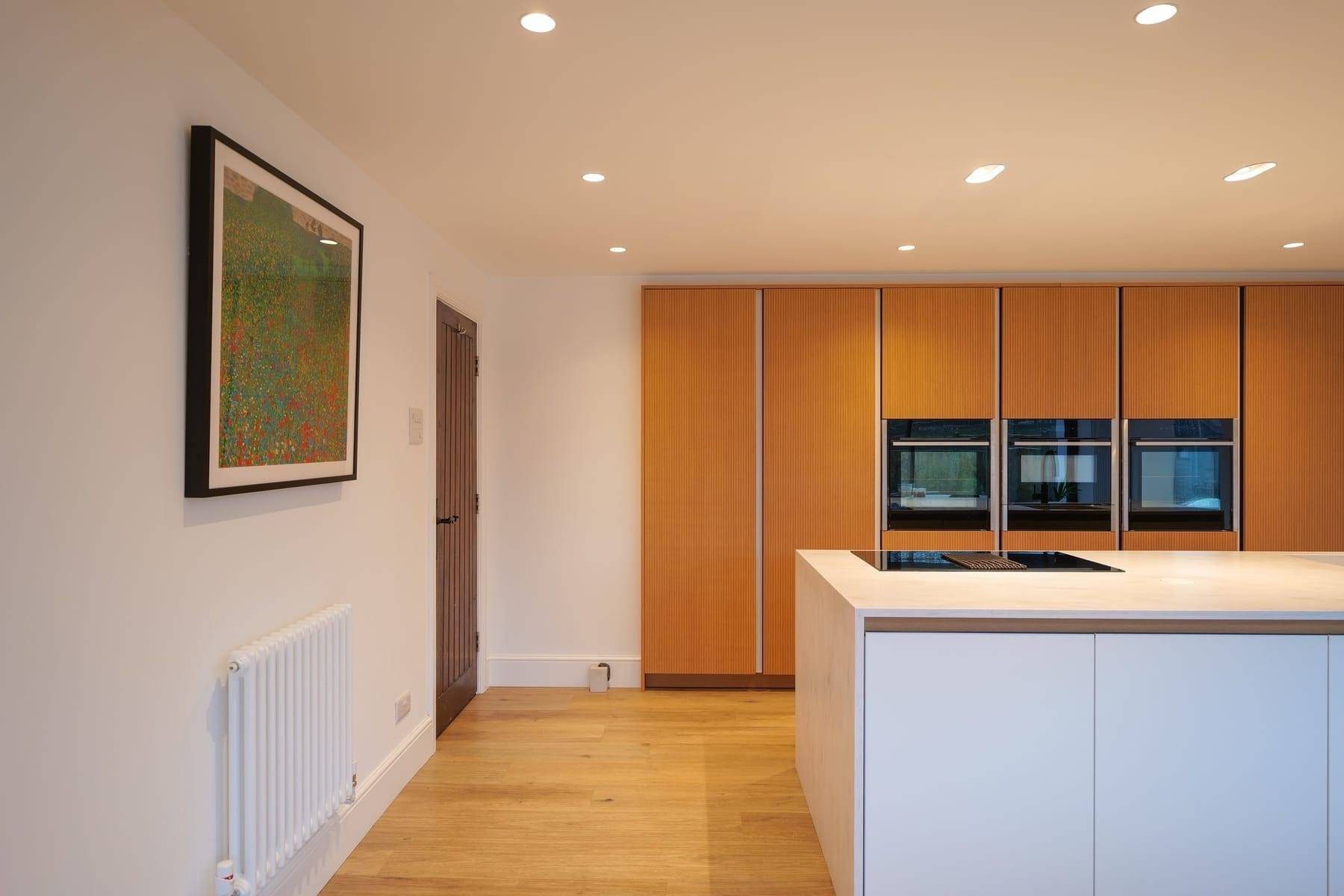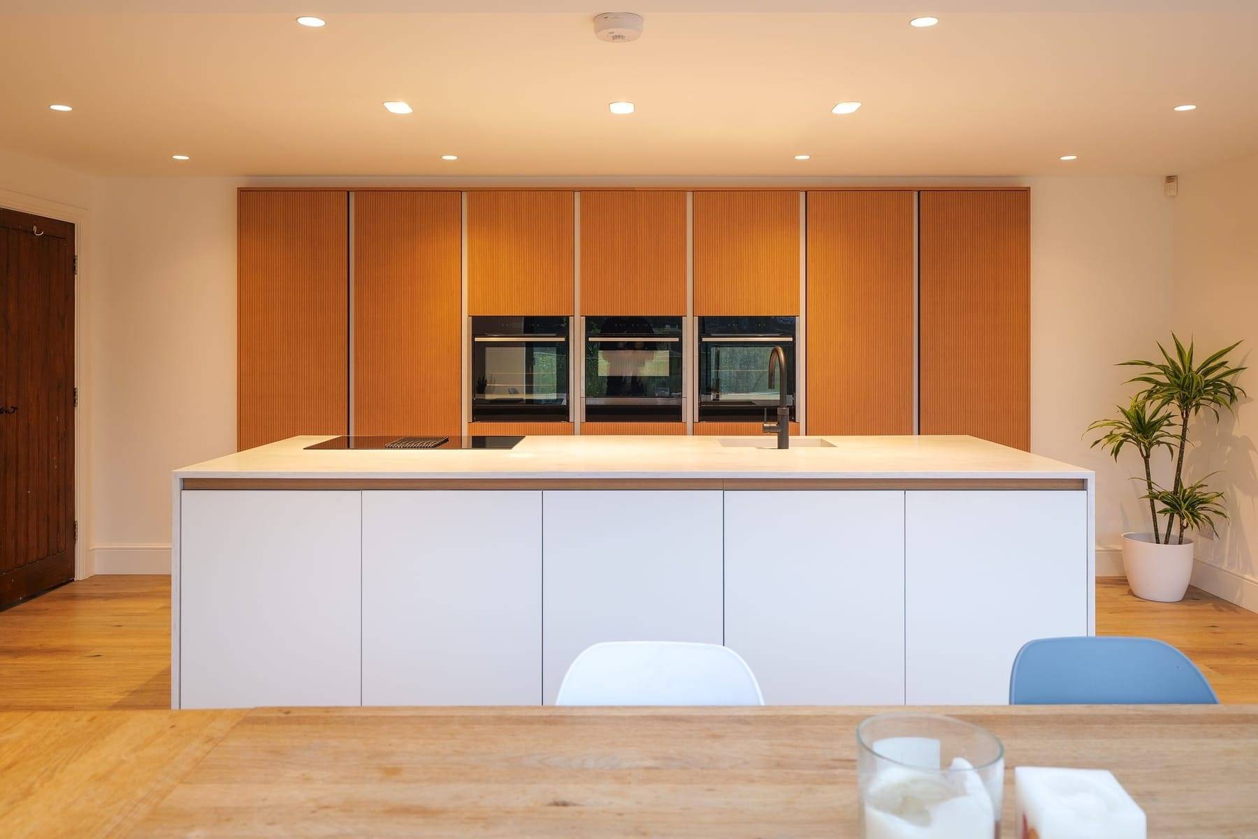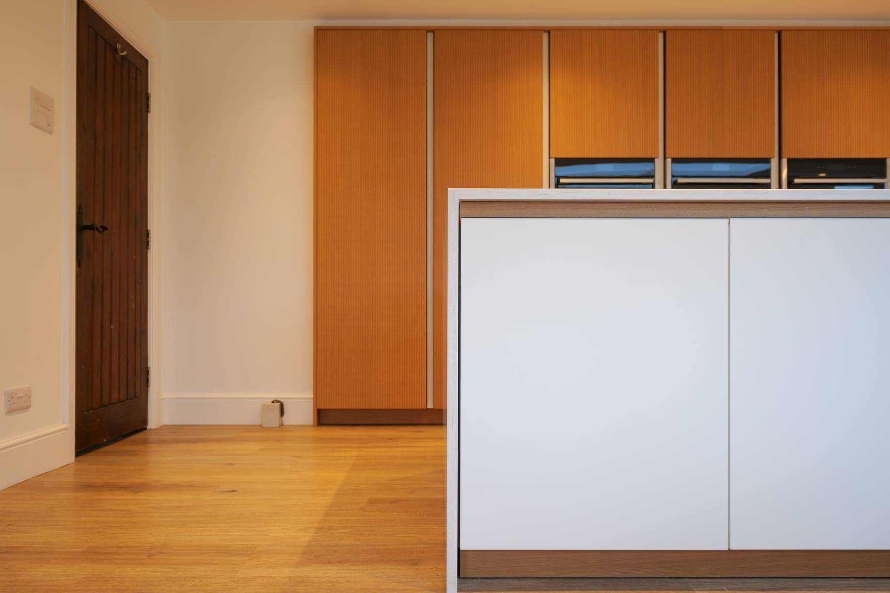 - Corian Rain Cloud Worktops with mitred waterfall island feature