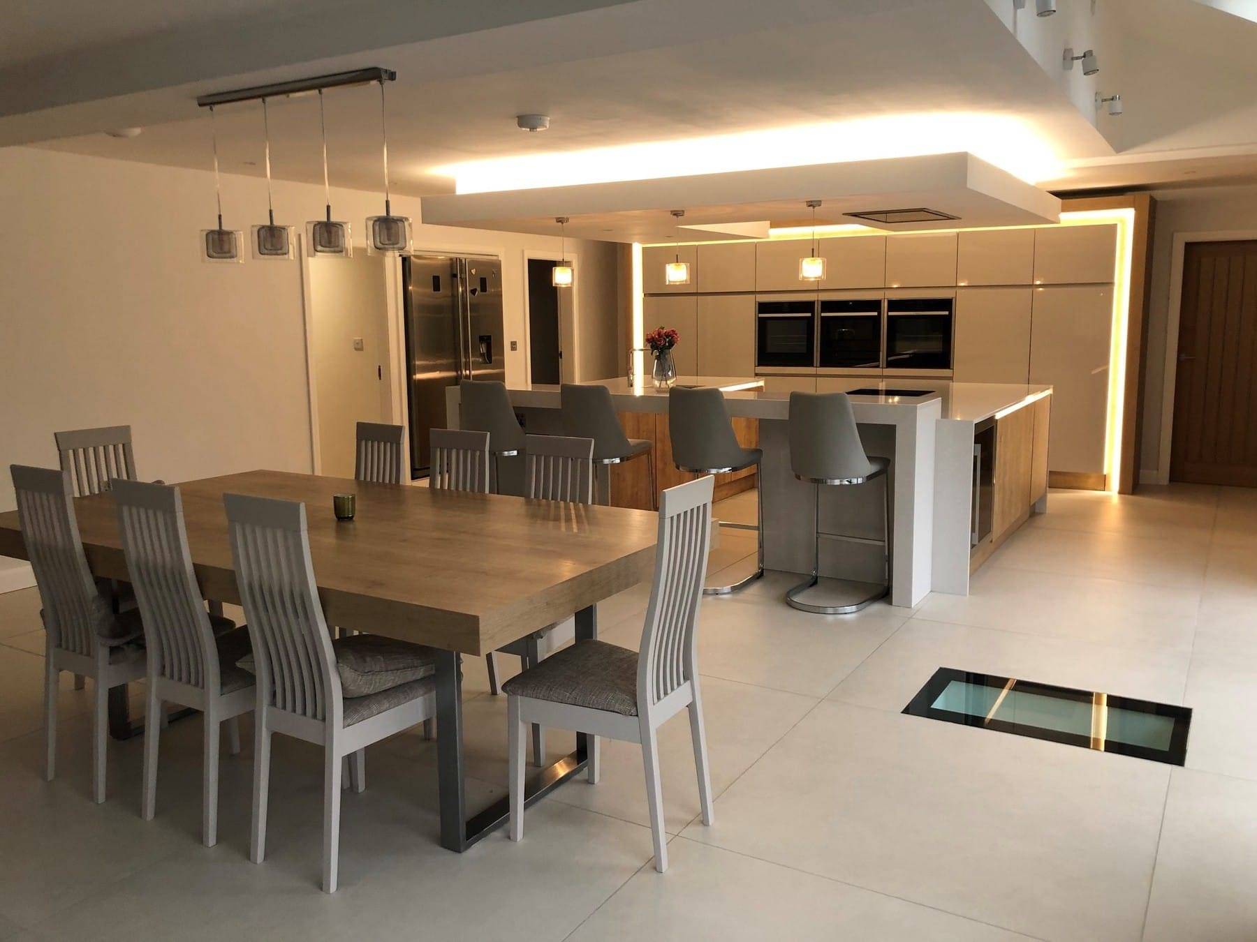 The Brief Portfolio Kitchens were asked to transform 3 seperate rooms in to an open plan kitchen and living area. Our clients wanted a statement kitchen with a wow factor! Kitchen Features Luxury Open Plan Kitchen in Atherton This is Nolte Flair, in Black Soft Matt with a colour contrasting brass edging. this statement breakfat…